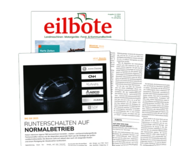 Das eilbote Magazin ist eins der wichtigsten Fachmagazine der Landtechnikbranche. Wöchentlich informieren wir unsere Leser über die neuesten Maschinen aus den Bereichen Landtechnik, Motorgeräte, Forst- und Kommunaltechnik, Meldungen der Branche, stellen Unternehmen vor und berichten über Neuheiten aus Wirtschaft und Landwirtschaft. Testen Sie jetzt unsere Print- oder Digital-Ausgabe.